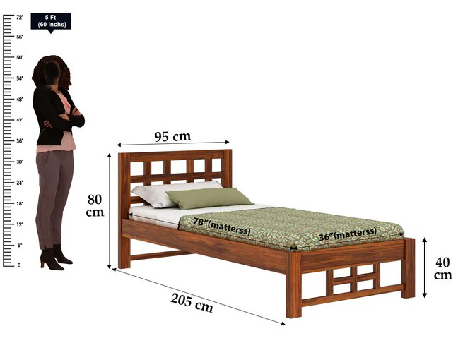 Dipan ini dibuat menggunakan kayu jati ukuran single 90×200 cm. Seluruh komponen dipan, meliputi kaki, galaran (gambangan), headboard, dan footboard, menggunakan material kayu jati. Finishing menggunakan melamin natural.